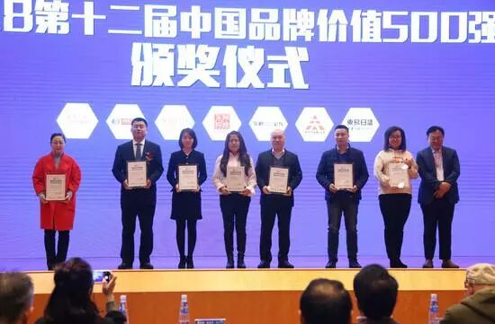 2018年12月28日,2018年全国品牌两会在福州召开,会议为第12届中国品牌价值500强举行了颁奖仪式。